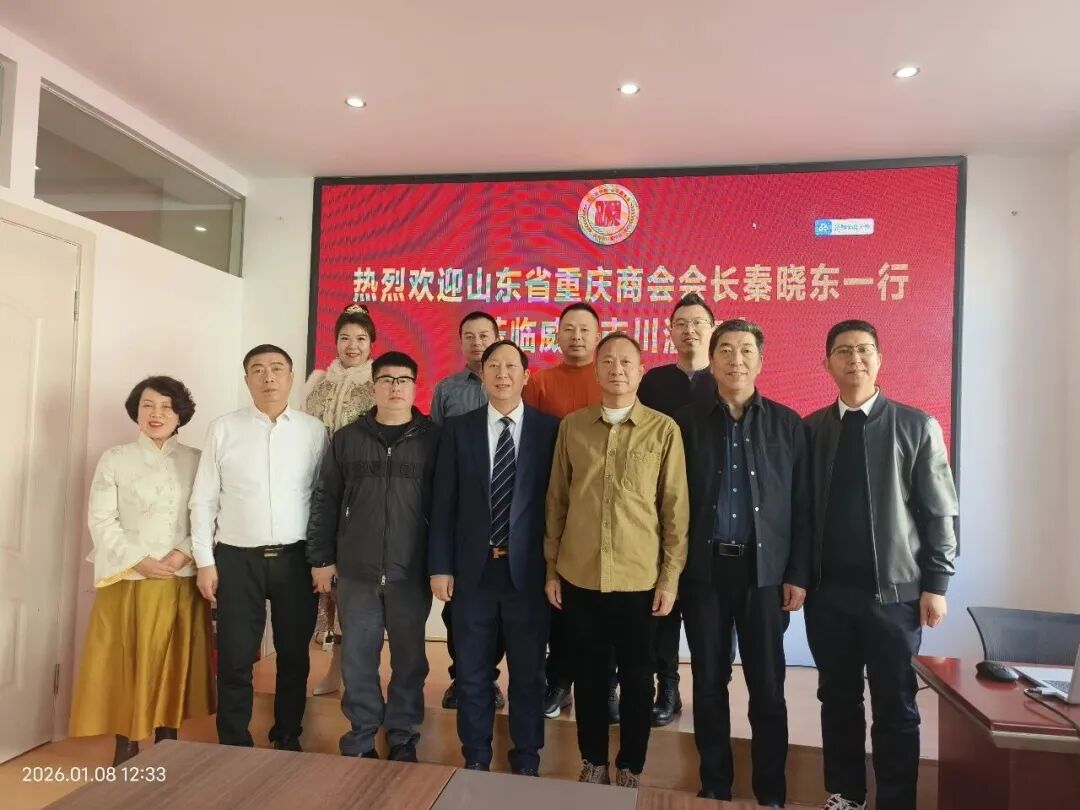 为深化商会间的交流合作,2026年1月8日上午,山东省重庆商会会长秦晓东、执行会长杨明镜、党支部书记柯伦、常务副会长张洪、秘书长罗飞一行到访威海市川渝商会并开展座谈交流。威海市川渝商会会长李建中、党支部书记冯魁、秘书长何发伟、常务副会长廖桂清、邓兆琳,副会长周芸庭等进行热情接待。